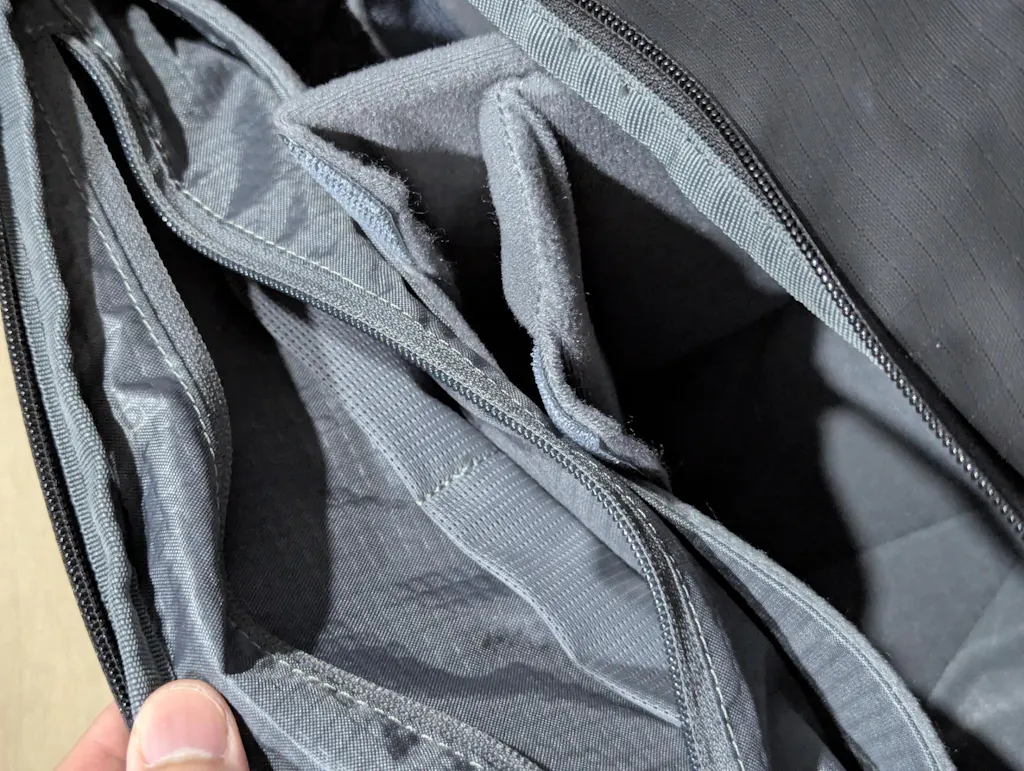 There are quite a few thoughtful organizational pockets, inside the main compartment which are great for accessories like memory cards, card readers and so on. There's also a hidden pocket right at the back of the bag, that might be great for a small notebook or ND filters.