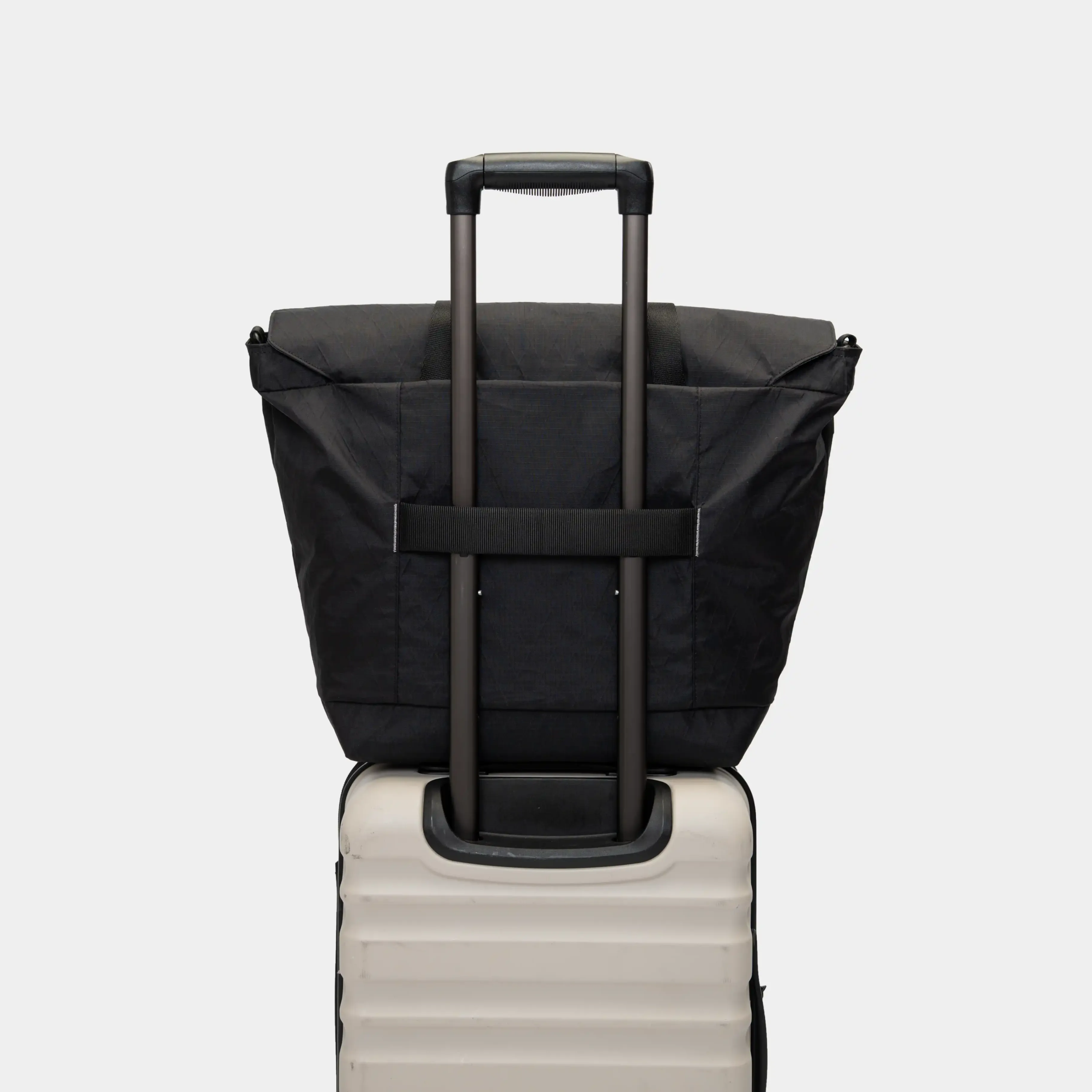 Skip taking a big checked bag and carry what you need with this simple tote. It is the right size to go under the seat or in an overhead bin on the plane. This makes it a good choice for a weekend trip or to take it with you for work travel. The band on the back of the bag lets you slide it over the handle of your rolling luggage. This will help you move through the airport with ease.